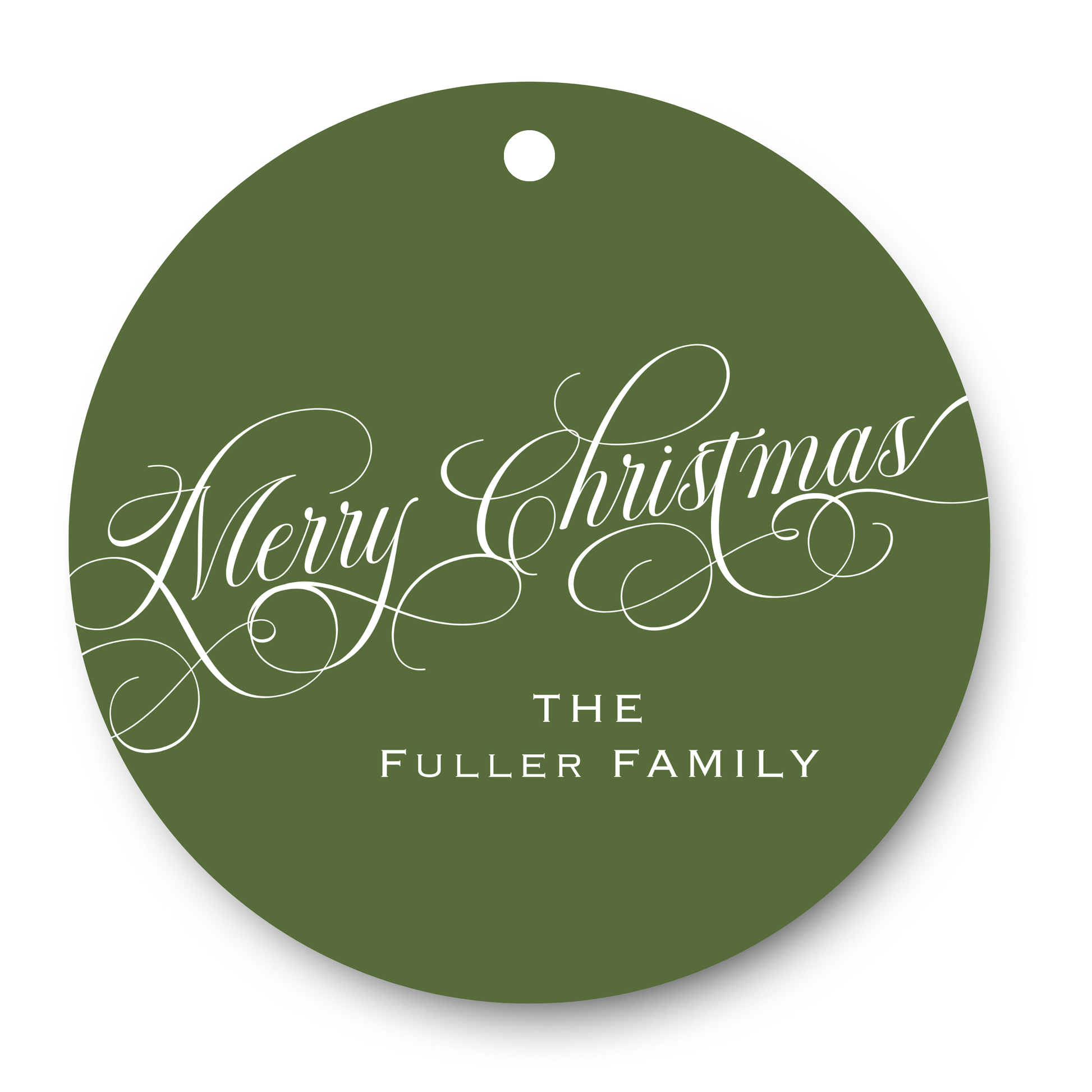 Personalized and sold in sets of 24, these 3" round gift tags are perfect to attach to gifts, party favors, and holiday goodies! Printed on thick linen-finish paper; hole is pre-punched.