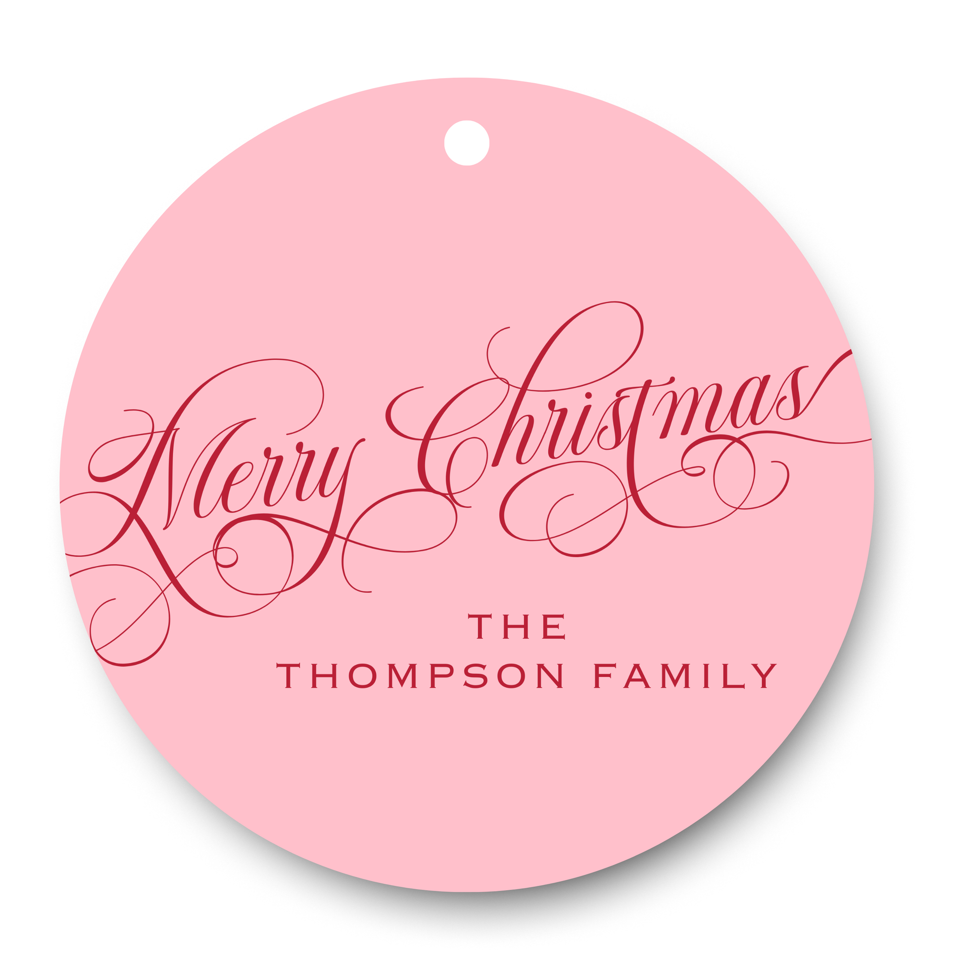 Personalized and sold in sets of 24, these 3" round gift tags are perfect to attach to gifts, party favors, and holiday goodies! Printed on thick linen-finish paper; hole is pre-punched.
